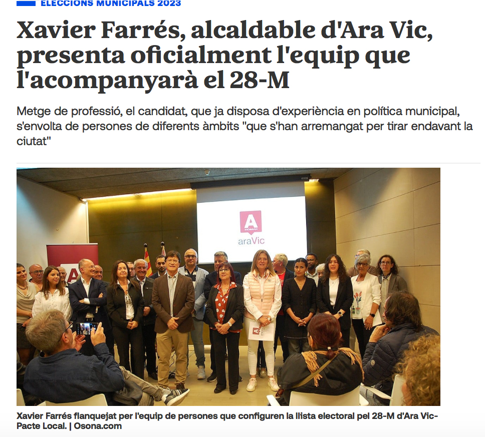 Entrevista a Claudia Losada, número 10 per Barcelona d’Espai CiU pel 23-J El Termòmetre (TaronjaTV) 15-02-2023 – Entrevista a Xavier Farrés, candidat d’Ara Vic